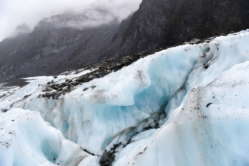 这是4月19日拍摄的新西兰南岛西海岸福克斯冰川。福克斯冰川是新西兰南岛南阿尔卑斯山山脉重要的冰川,是新西兰著名旅游胜地。由于全球气候变暖,福克斯冰川过去十年大幅退化。(新华社记者郭磊摄)