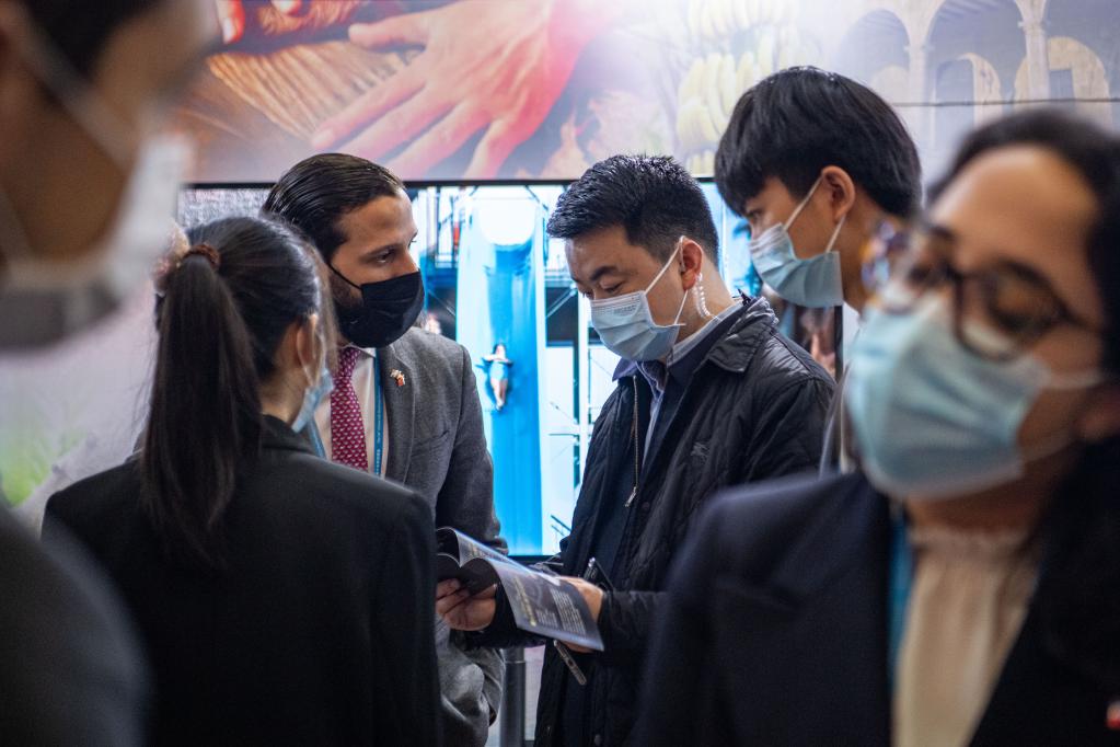 16日,参会嘉宾在第十四届中国—拉美企业家高峰会合作展上交谈、参观。新华社记者 唐奕 摄