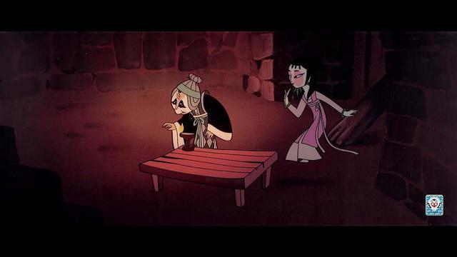 已经有很多人看见与评说该片对京剧视觉风格的借鉴。脸谱、化妆、服饰皆是。依我看,京剧对于该片,其更重要的作为是动画表演后面的喜剧精神。全片对白不多,老狐狸每每说话时的一举一动,语句与动作都在节奏中自由流动。蛋生与阿拐走路跳跃,其实也来自京剧的程式化表演。片中衙役押解犯人、官员坐轿、升堂问案……这些场面的喜剧效果融化了京剧与动画的界限,妙趣横生。