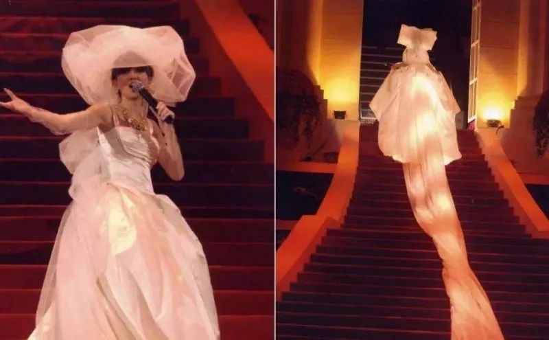 2002年,Kim Robinson为梅艳芳设计了犹如冠冕的莫西干发型,配合Dior的高级定制服装。