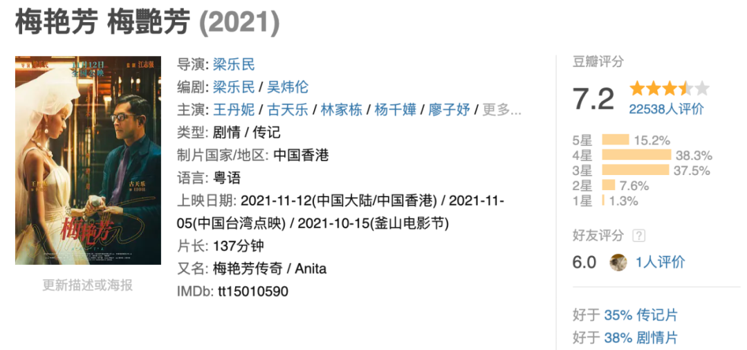 电影《梅艳芳》的豆瓣评分截图。