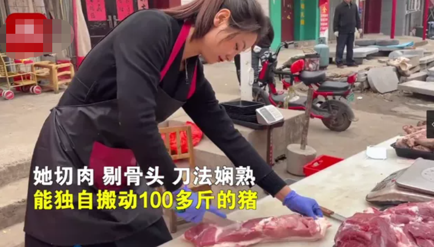 最近,在河南洛阳,有一位卖猪肉的女子因为样貌出众在网上悄悄走红。