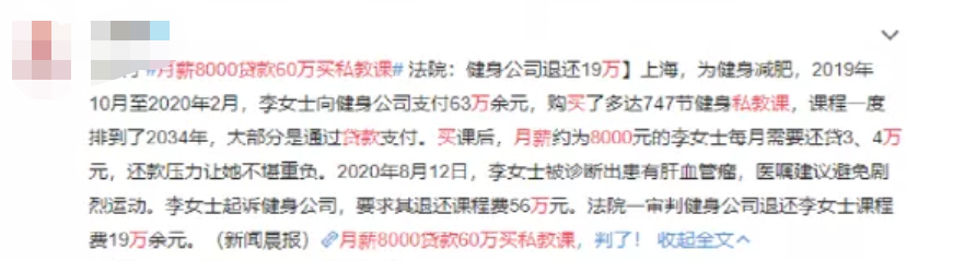 前不久,一位月薪8000元贷款60万买私教课的女子,登上了微博热搜。