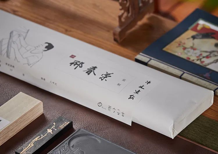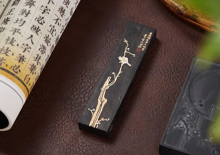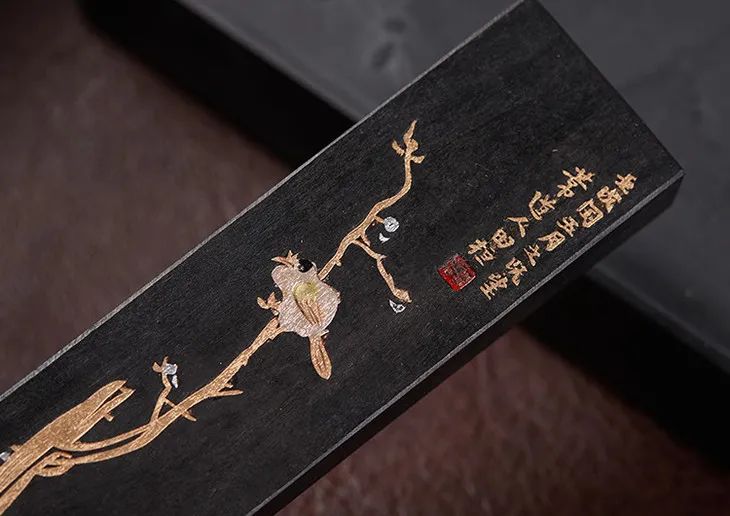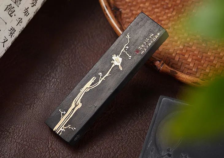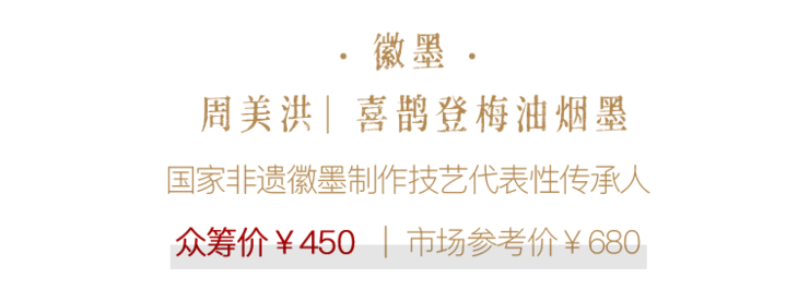 此款为上等油烟墨,用桐油加动植物油燃烧炼制出来,拌以皮胶、天然麝香、梅片、金箔等珍贵材料制成。