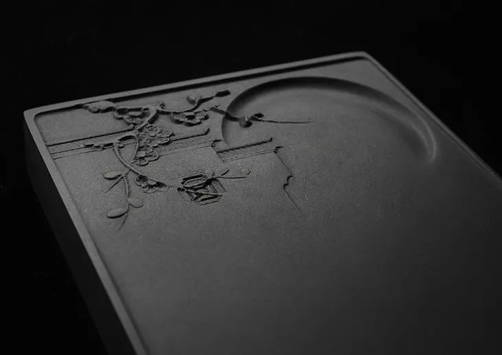 圆月形状的凹槽可存墨,雕工自然流畅,线条柔美。