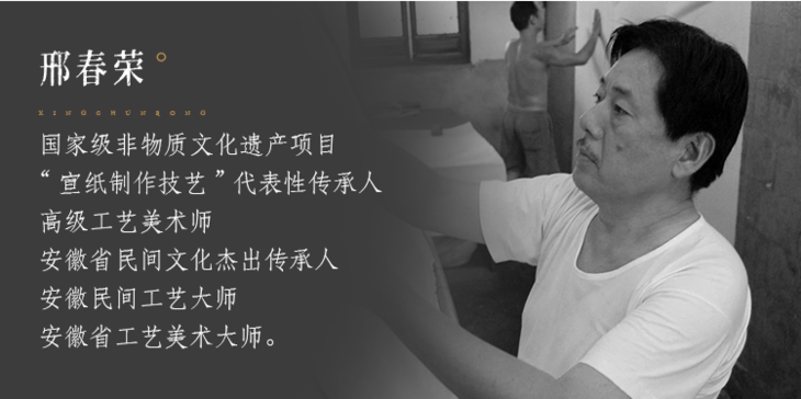 邢春荣老师生于安徽泾县,是非遗产宣纸制作技艺代表性传承人,师从宣纸第26代传人。