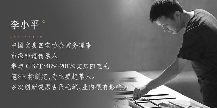 李小平老师任中国文房四宝协会常务理事,更是参与GB/T34854-2017《文房四宝毛笔》国标制定,为主要起草人!