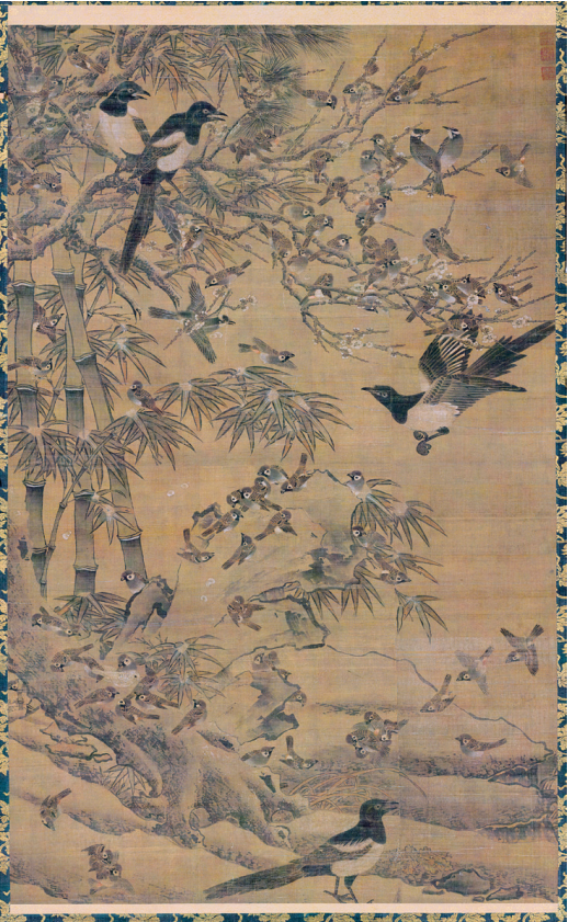 《三友百禽图》,明,边文进,绢本,153.5×95.4cm,美国克利夫兰博物馆藏。