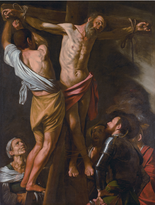 《圣安德鲁受难》,意大利,卡拉瓦乔,布面油画,202.5×152.7cm,美国克利夫兰博物馆藏。