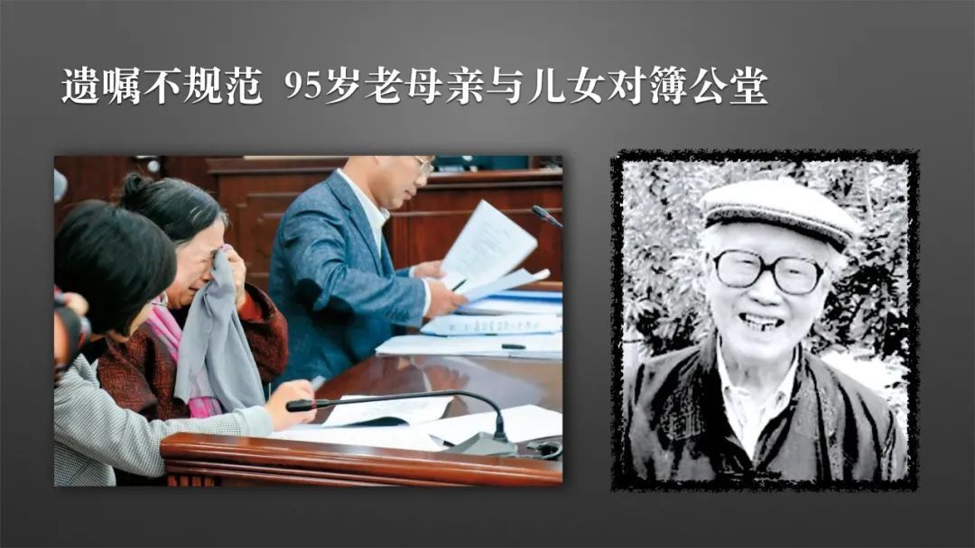 大家看到的这幅照片,这位老先生也是齐白石的弟子,他是齐白石的关门弟子——许麟庐先生。他写了遗嘱,而因为他的遗嘱写得不规范,导致了一家人,亲生的母子、母女最后对簿公堂。