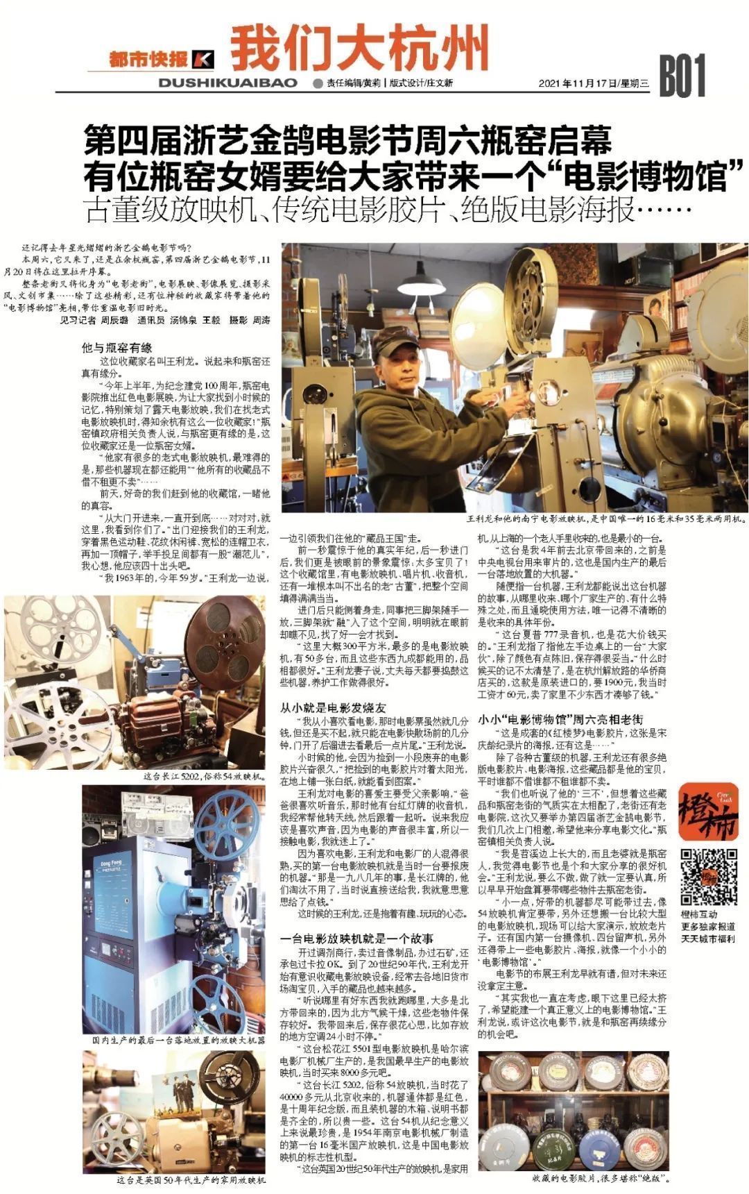 “今年上半年,为纪念建党100周年,瓶窑电影院推出了红色电影展映,为了让大家找到小时候的记忆,特别策划了露天电影放映,我们在找老式电影放映机时,得知余杭有这么一位收藏家!”瓶窑镇政府相关负责人说,与瓶窑更有缘分的是,还是一位瓶窑女婿