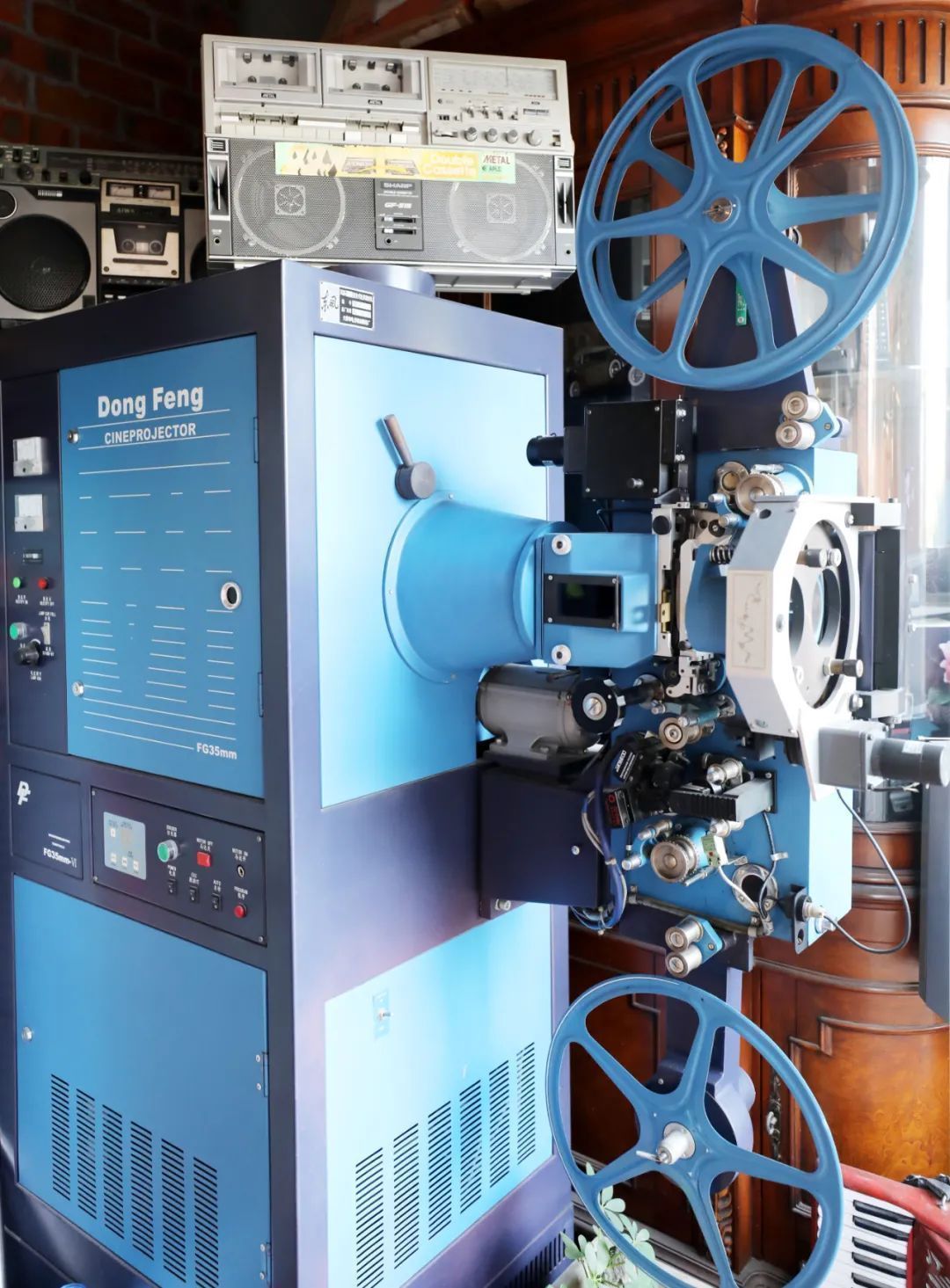 因为喜欢电影,王利龙和电影厂的人混得很熟,买的第一台电影放映机就是当时一台要报废的机器。“那是八几年的事,是长江牌的,他们淘汰了不用了,当时说直接送给我,我就意思意思给了点钱。”