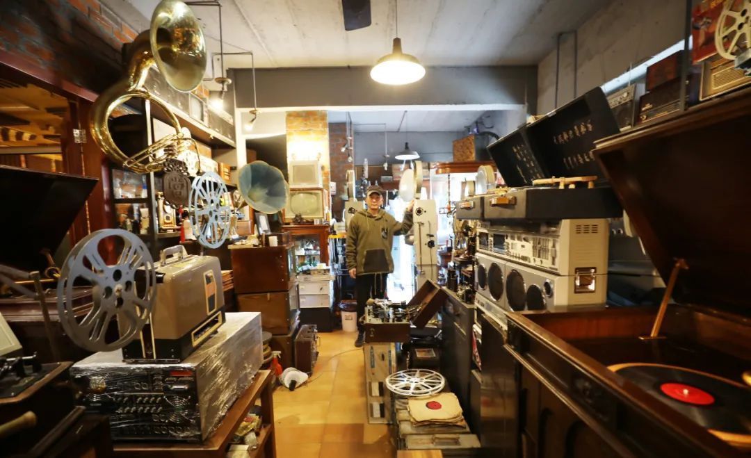前一秒震惊于他的真实年纪,后一秒进门后,更是被眼前的景象震惊:太多宝贝了!这个收藏馆里,电影放映机、唱片机、收音机,还有一堆根本叫不出名的老“古董”,把整个空间填得满满当当。