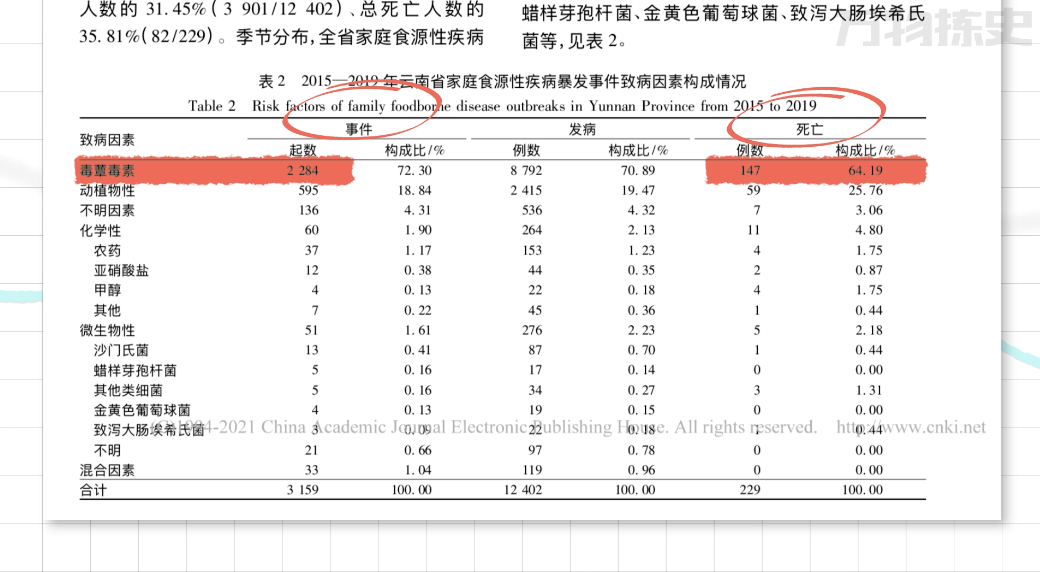 根据不完全统计,2015~2020年内,由采食野生菌引发的中毒事件报告超过了两千起。也正因为致死率高,平均每年死于有毒菌菇的人数,占所有类型食物中毒死亡数的近七成。