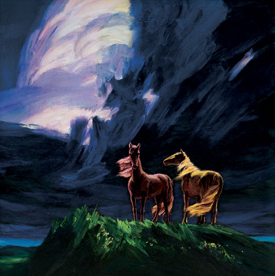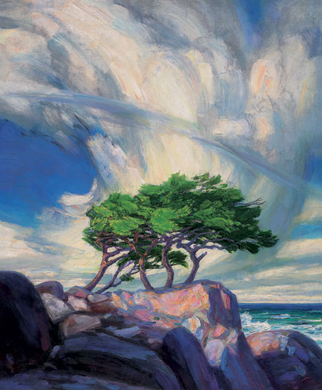 除了人物画,风景画是詹建俊的又一创作重点,他的风景油画完全脱离叙事,是自由自在的抒情写意,画面结构恢宏大气,波澜壮阔。他写意性的笔触和雕塑式的机理,正是他在尽情地讴歌自然生命的活力。