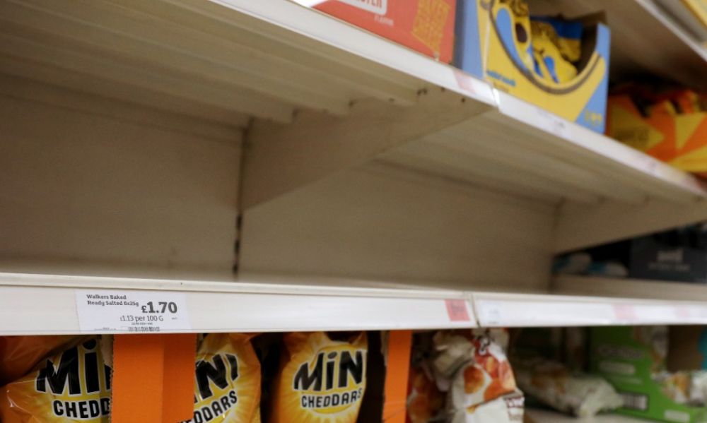 11月11日,英国伦敦一家超市部分薯片产品无货。(新华社记者李颖摄)