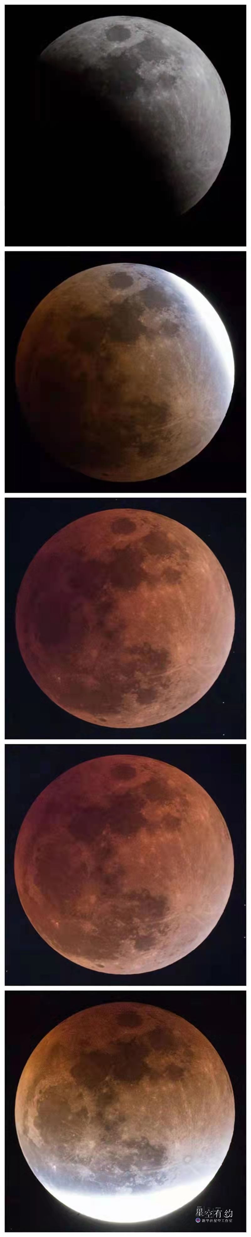 王俊峰表示,想拍到震撼的“准红月亮”,首先推荐使用单反或微单相机配合长焦镜头来获得月食各个时间段的特写,其次可以使用中焦段拍摄,也可以使用广角镜头拍摄表现月食过程的“串像”;在有小型天文望远镜的情况下,把相机机身或手机摄像头通过夹具或转接环连接到望远镜目镜上拍摄也是不错的选择。此外,目前各大主流手机也能轻松拍到月食,单张照片使用自动模式或者夜景模式拍摄,实录视频或者延时视频建议采用中焦段(一般为3X或者5X)进行拍摄。不管使用什么器材,最好准备一个稳固的三脚架来固定拍摄设备,可保证画质和画面的稳定。