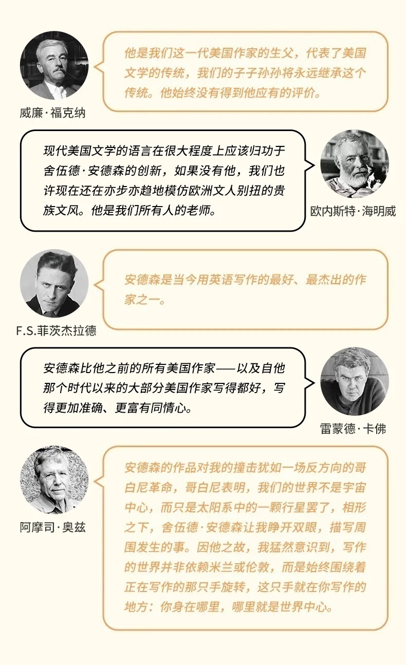 海明威称安德森为“我们所有人的老师”——“如果没有他,我们也许现在还在亦步亦趋地模仿欧洲人别扭的贵族文风”。
