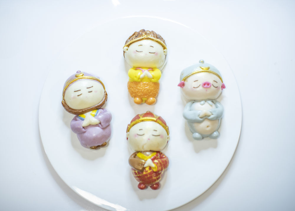 这是2021年4月15日在重庆市渝北区欧阳勤芸工作室内拍摄的蒸好后的西游记人物造型馒头。新华社记者 黄伟 摄
