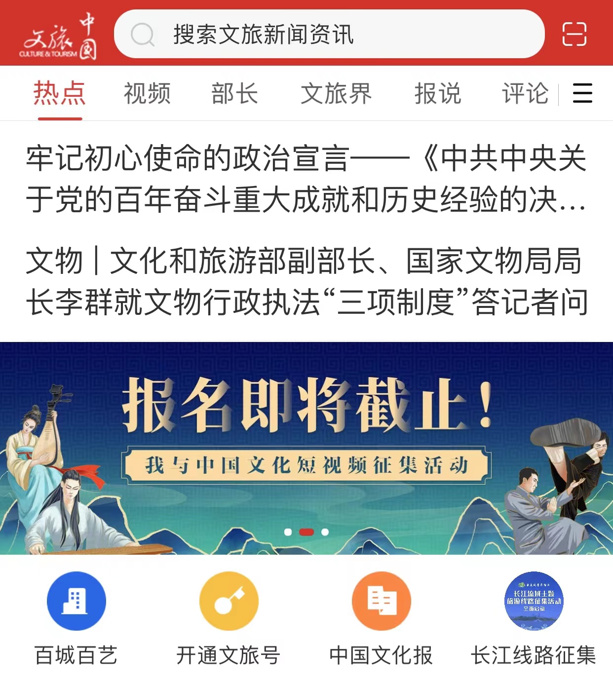 作为文化和旅游部在移动互联网的主要舆论阵地,文旅中国聚焦文化和旅游系统,内容权威、资讯丰富,视角宽广,致力于加强文化和旅游政策的传播与引导,成为文化和旅游融合发展的倡导者、实践者、传播者。