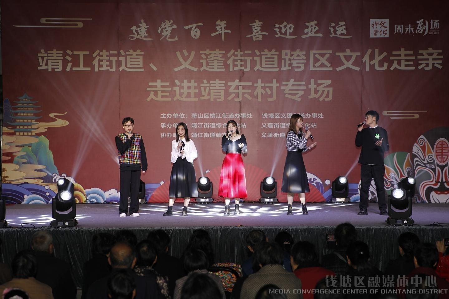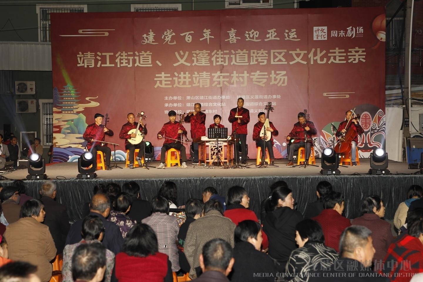 近日,杭州市钱塘区义蓬街道“建党百年 喜迎亚运”跨区文化走亲来到靖江街道靖东村,为当地村民带来了一场视觉、听觉的文化盛宴。
