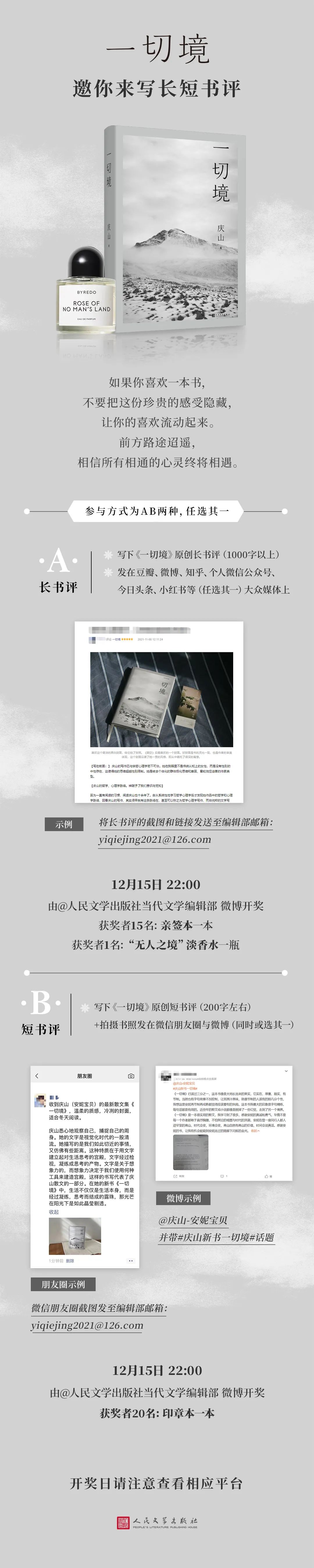 以上,是翻开庆山2021年最新散文集《一切境》,在两页之内读到的一些内容。与以往散文一样,文字素材来自她的日常观察与心得,传递她的记忆、情绪、感情与观念。但与旧作相比,《一切境》在内容上进行了更强力的萃取,在形式上更为自由松弛。