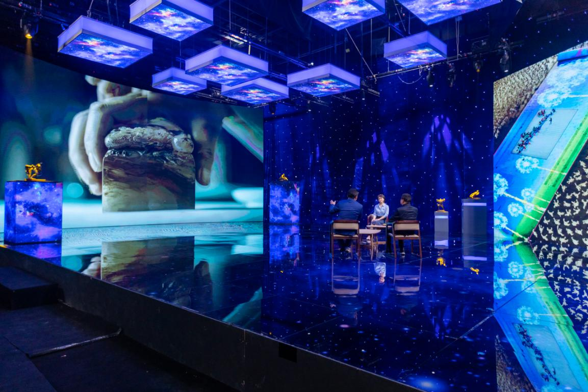 在中央广播电视总台“5G+4K/8K+AI”战略推动下,《艺术里的奥林匹克》以全4K标准制作播出,同时运用数字动画等先进技术手段展现“大体育”的艺术气质。在演播室布局上,节目打造出既有现代科技感,又富传统中国画风的艺术空间,让体育运动和艺术作品之间形成相互生发、相映成趣、相得益彰的有机整体。
