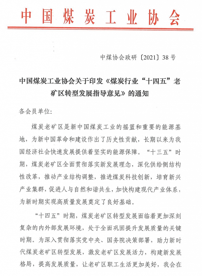 11月19日,中国煤炭工业协会在其官网发布关于印发《煤炭行业“十四五”老矿区转型发展指导意见》的通知。