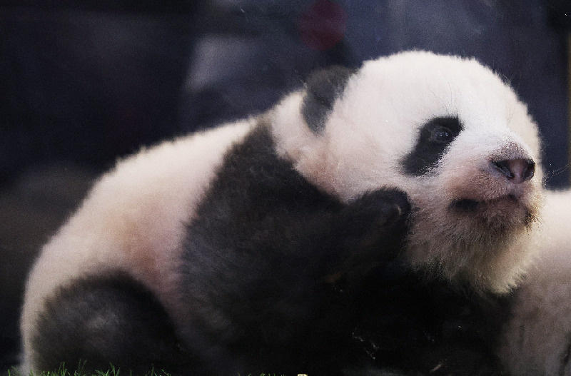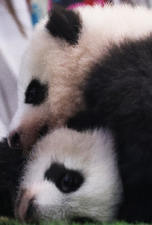3个多月前在该园出生的雌性大熊猫双胞胎