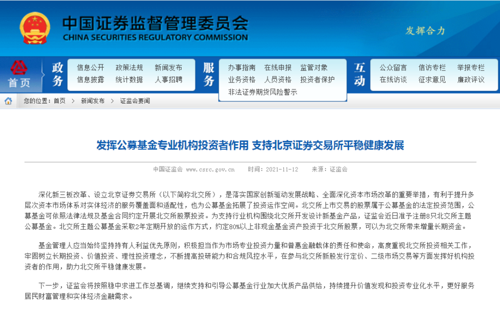 随着北京证券交易所开市,公募基金加快了在北交所布局的步伐。11月19日起,首批8只北交所主题公募基金公开发售,将为北交所带来增量长期资金。