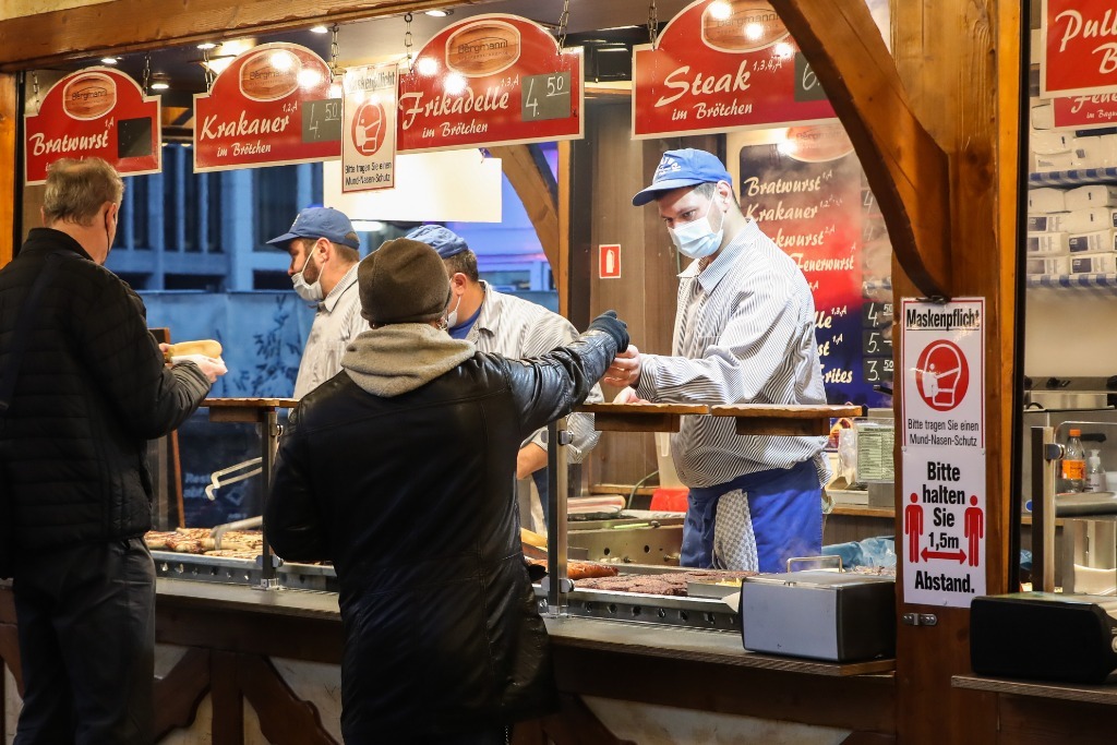 11月15日,人们在德国柏林的一处市场购买小吃。(新华社记者单宇琦摄)