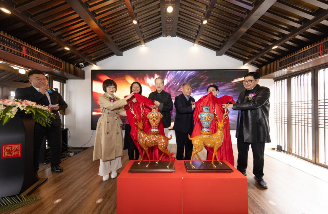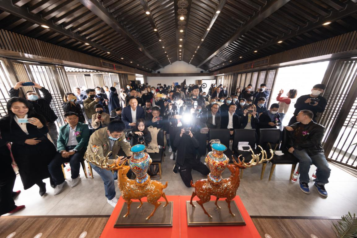 现场,两位大师与大家分享了各自的创作感言。朱炳仁大师说道:“《福禄中国尊》较之自己以往的铜鹿作品增加了高浮雕工艺,突破平面形式,打造出立体美感,是我数十年铜雕艺术生涯的一次跨越和创新。”钟连盛大师表示:“本次合作是千年铜雕工艺与皇家景泰蓝工艺的跨时空交融,也是千年敦煌文化与宫廷文化的创新融合,作品无论在造型、色彩、工艺等方面都有很多创新,也是我自身创作的一次升华。”