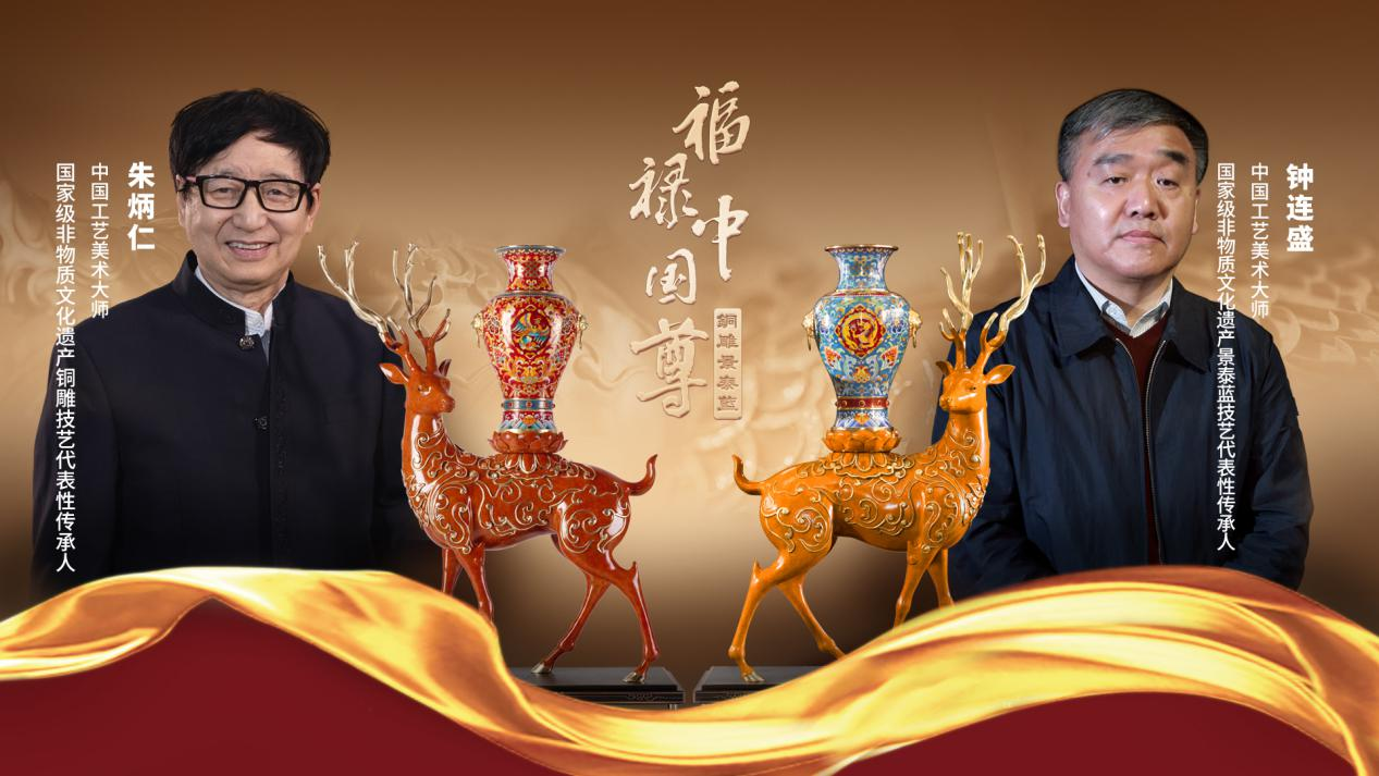 据悉,本次发布的《福禄中国尊》铜雕景泰蓝是朱炳仁·铜与央视王牌栏目《国家宝藏》IP产业融合项目产物,朱炳仁和钟连盛联袂创作。《国家宝藏》IP独家运营方负责人夏雨声在视频发言中谈到:“要不断创新发展,弘扬中华优秀传统文化,以国潮方式传承国之经典,提升工艺作品的审美价值和收藏价值,真正让国宝‘活’起来、‘火’起来,助力中华文化更好的传下去、走出去。”