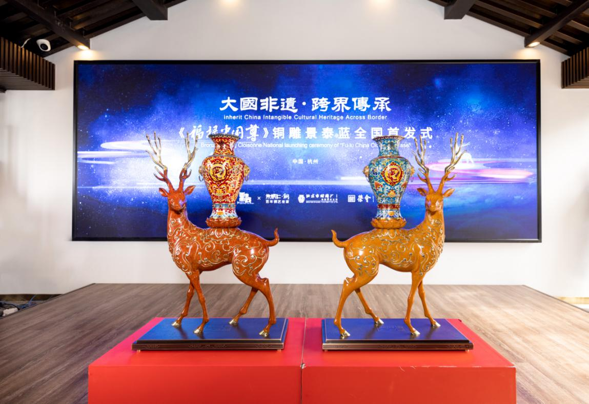 浙江省非物质文化遗产保护中心主任郭艺在致辞中说:“《福禄中国尊》铜雕景泰蓝将杭州传统手工技艺铜雕与皇家景泰蓝技艺跨界融合,碰撞出全新的艺术火花,是传统工艺现代演绎的新经典,是新时代中国非遗的典范之作。”