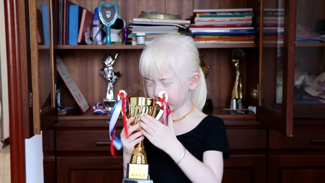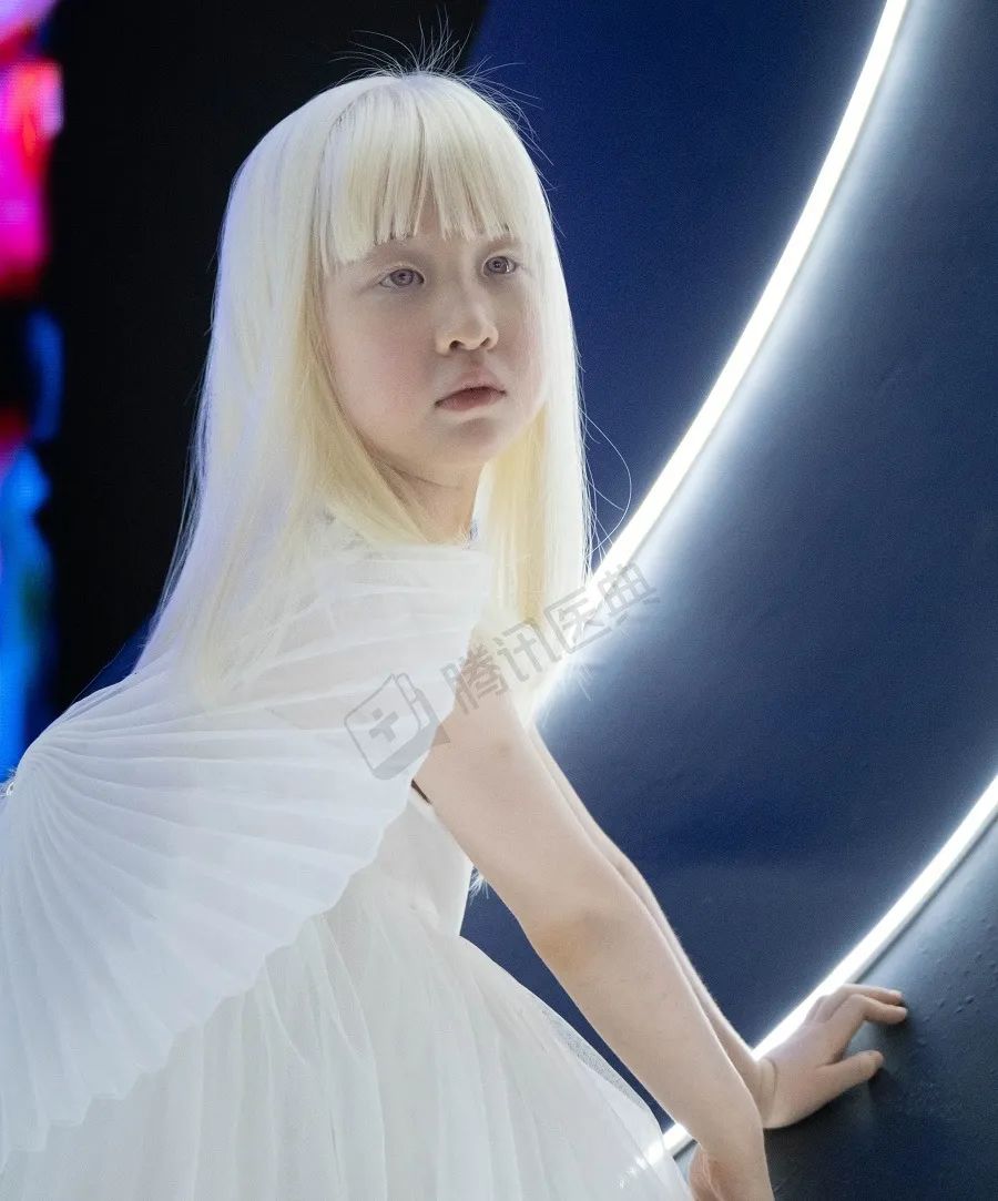 放暑假时,奇迹每周都有好几节走秀课,有时候为了比赛或者重要的活动还会加课。走秀教室里,同班的孩子摸摸她的头发说:“你的头发是白的,全身都是白的,眉毛也是白的。”