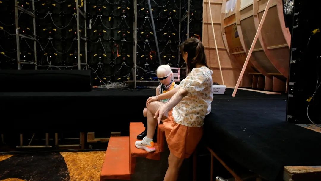 7月8日一早,奇迹从上海赶往嘉兴,在服装秀场的后台,几个孩子围过来看着奇迹,尽管早已经历无数次被目光和疑问包围,但她还是低下了头。