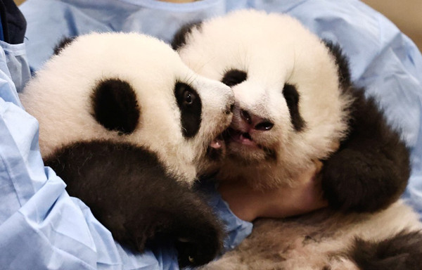 “圆嘟嘟”与“欢黎黎”!中国旅法大熊猫双胞胎幼崽喜获闺名。