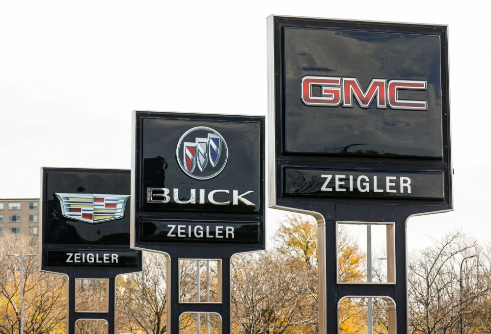 这是2020年11月5日在美国伊利诺伊州林肯伍德拍摄的通用汽车旗下凯迪拉克、别克和GMC的标牌。(新华社发,乔尔·莱纳摄)