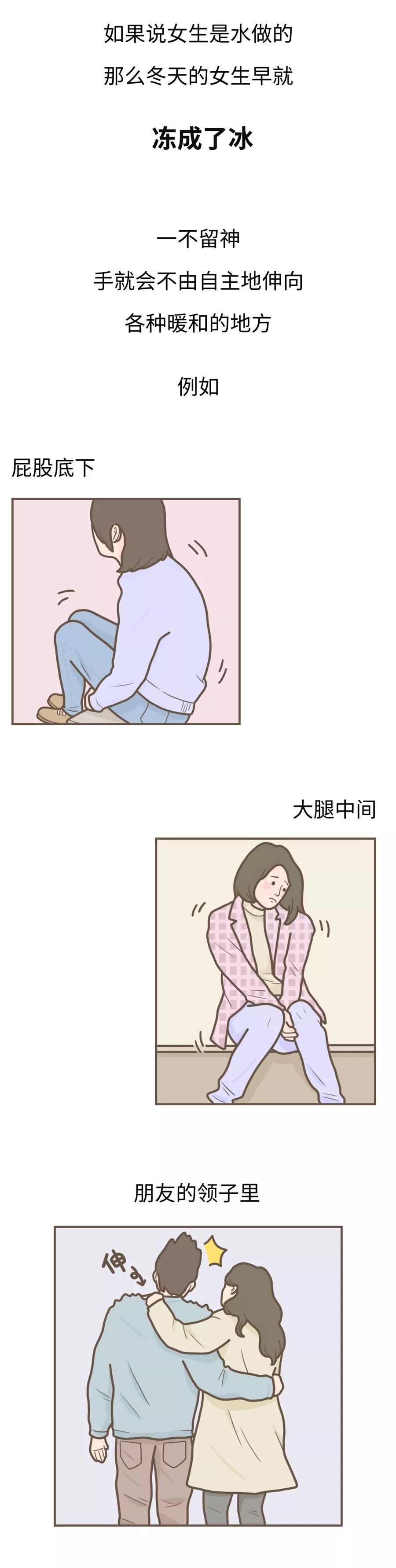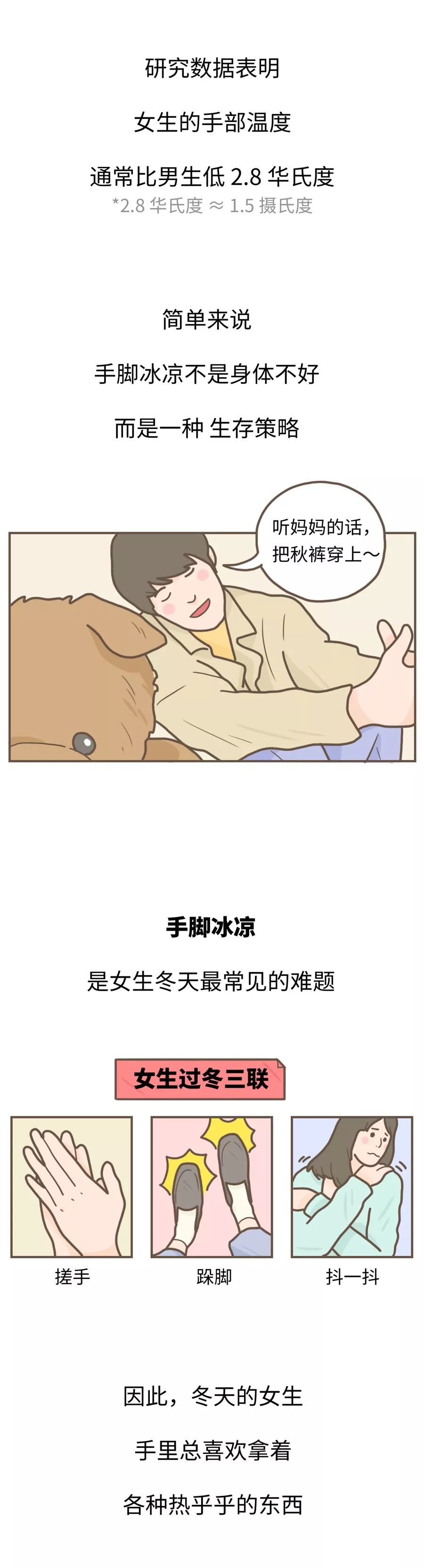 *女生怕冷是冬天的常见现象,但本文并不代表所有女生和男生,生活中也有男生很怕冷或有些女生完全不怕冷,找到适合自己的取暖方式就好~