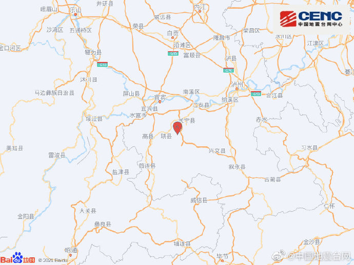 中国地震台网自动测定:11月21日18时51分在四川宜宾市长宁县附近(北纬28.48度,东经104.83度)发生4.5级左右地震,最终结果以正式速报为准。