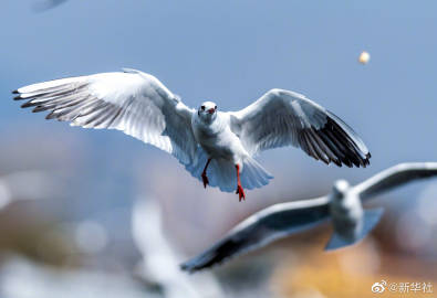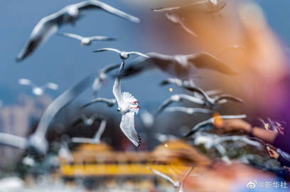 【#鸥翔春城舞蹁跹#】11月21日,春城昆明天气晴好。在滇池海埂大坝,成群的红嘴鸥时而盘旋、时而嬉戏。