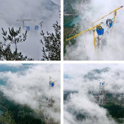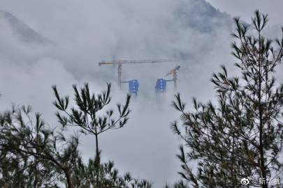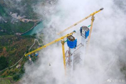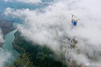 【#贵州金仁桐高速桐梓河特大桥主塔封顶#】21日,随着最后一方混凝土浇筑完成,由中铁广州局承建的贵州金(金沙)仁(仁怀)桐(桐梓)高速桐梓河特大桥主塔成功封顶。据了解,该桥位于贵州省仁怀市、桐梓县交界处,横跨桐梓河,全长1422米,主跨达965米,主塔高208米,是全线重要的控制性工程。