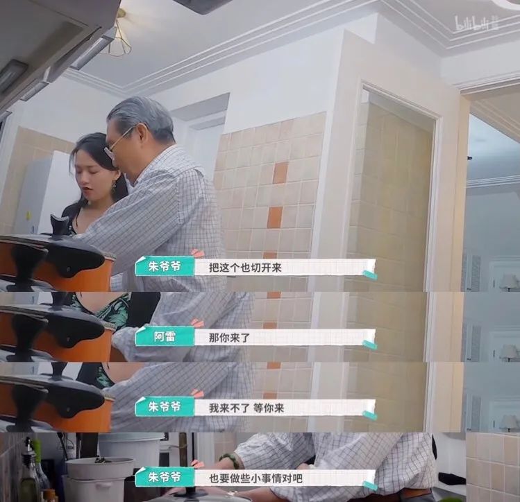 朱爷爷一家在为最后一顿饭张罗着,难得下厨房的朱爷爷略显笨拙地切着冬瓜,最终还是选择成为理论输出的王者,惨遭阿雷Miya吐槽。