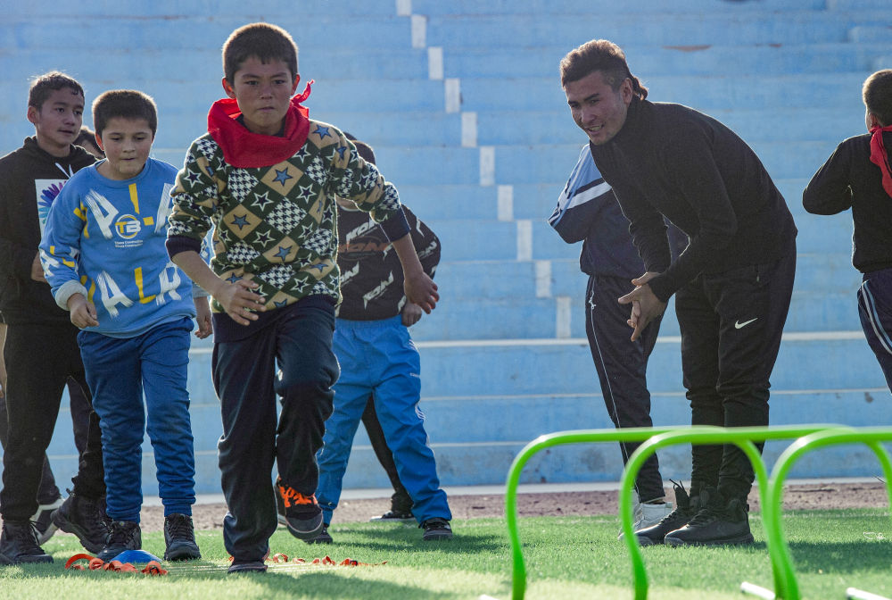 赛季结束,回到家乡,“努尔飞腿”依然是从前的那个努尔麦麦提,喂牛、喂羊、摘菜……农活儿一样不落。同时,努尔麦麦提用自制的器械坚持训练,深蹲用的轮胎是家里废弃的毛驴车上拆下来的,收腹跳、折返跑的障碍物是用削尖的木条砸进土里的。除了拖轮胎跑、深蹲等体能项目,他还增加了横向、侧向的脚步移动,一天两练直到淌汗。赶上乡里小学足球队有训练,他还会跟自己儿时的教练一起指导爱踢球的孩子们。在孩子们心目中,努尔麦麦提就是看得见、摸得着的“球星”。