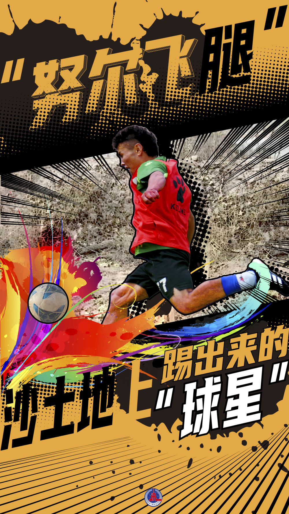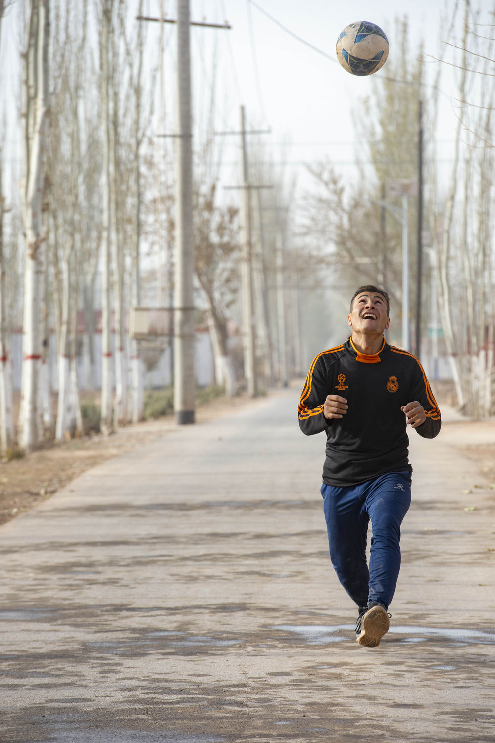 一记漂亮的凌空抽射,足球被精准地射入十米开外的牲畜饲料房透气孔,努尔麦麦提的脚下扬起滚滚沙尘。这是网名为“努尔飞腿”的新疆小伙在社交平台上发布的视频中最常见的画面。