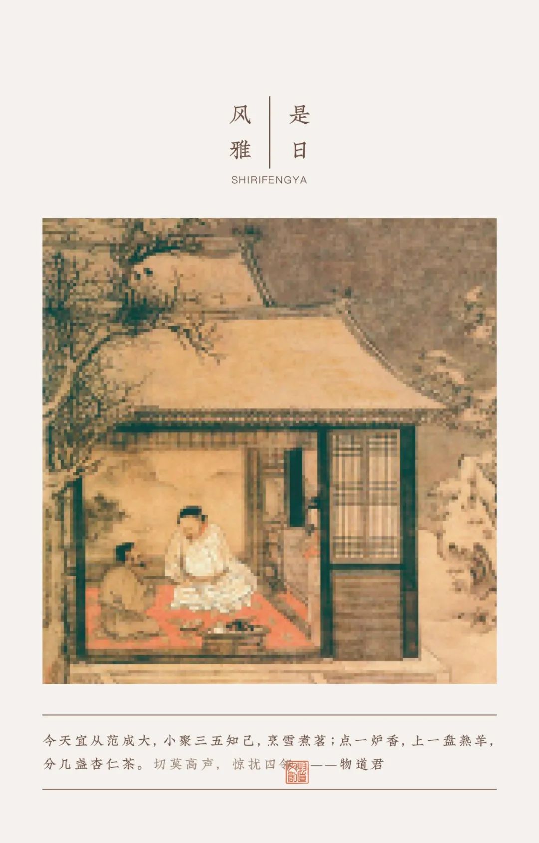 高飣膻根浇杏酪,旋融雪汁煮松风。