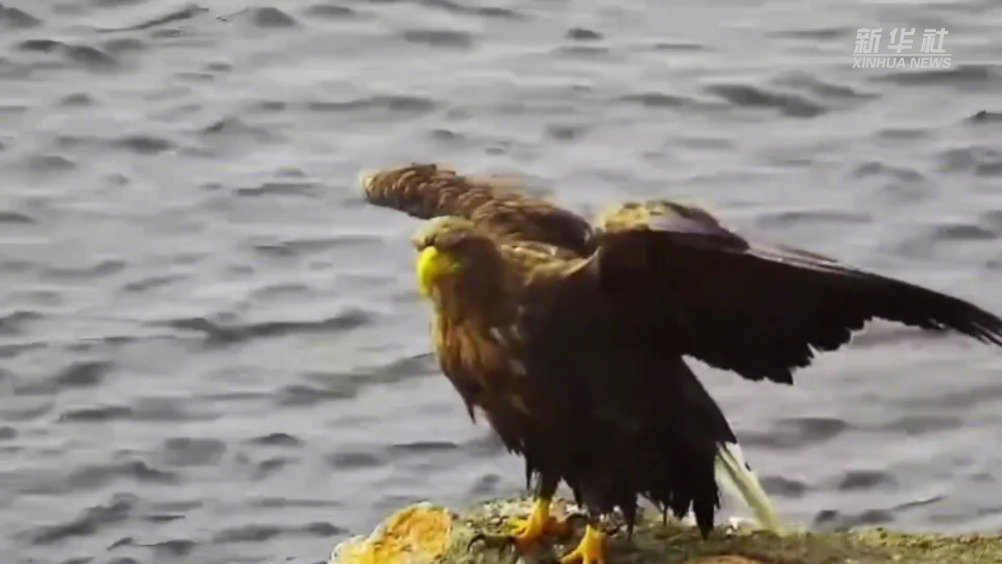 【#四川若尔盖县监测到白尾海雕#】近日,随着气温持续走低,在四川省阿坝藏族羌族自治州若尔盖县花湖境内,工作人员监测到国家一级保护动物白尾海雕的珍贵画面。 新华社的微博视频