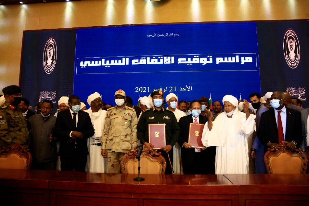 这是11月21日在苏丹喀土穆拍摄的政治宣言签署仪式。(新华社发,穆罕默德·海德尔摄)
