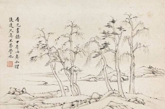 款识:香光画稿中有此,真所谓淡逸天真,不易学也。