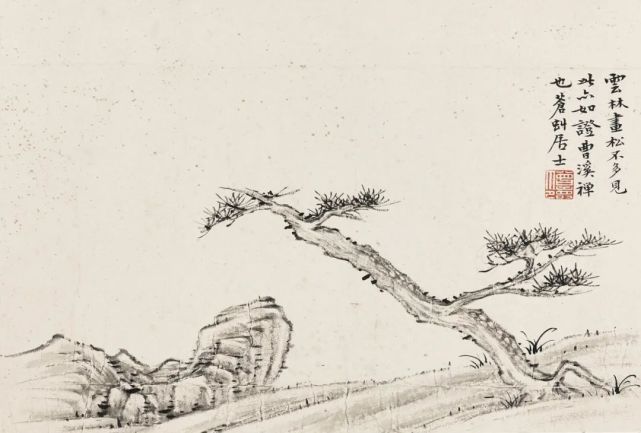 款识:云林画松不多见,此亦如证曹溪禅也。苍虯居士。